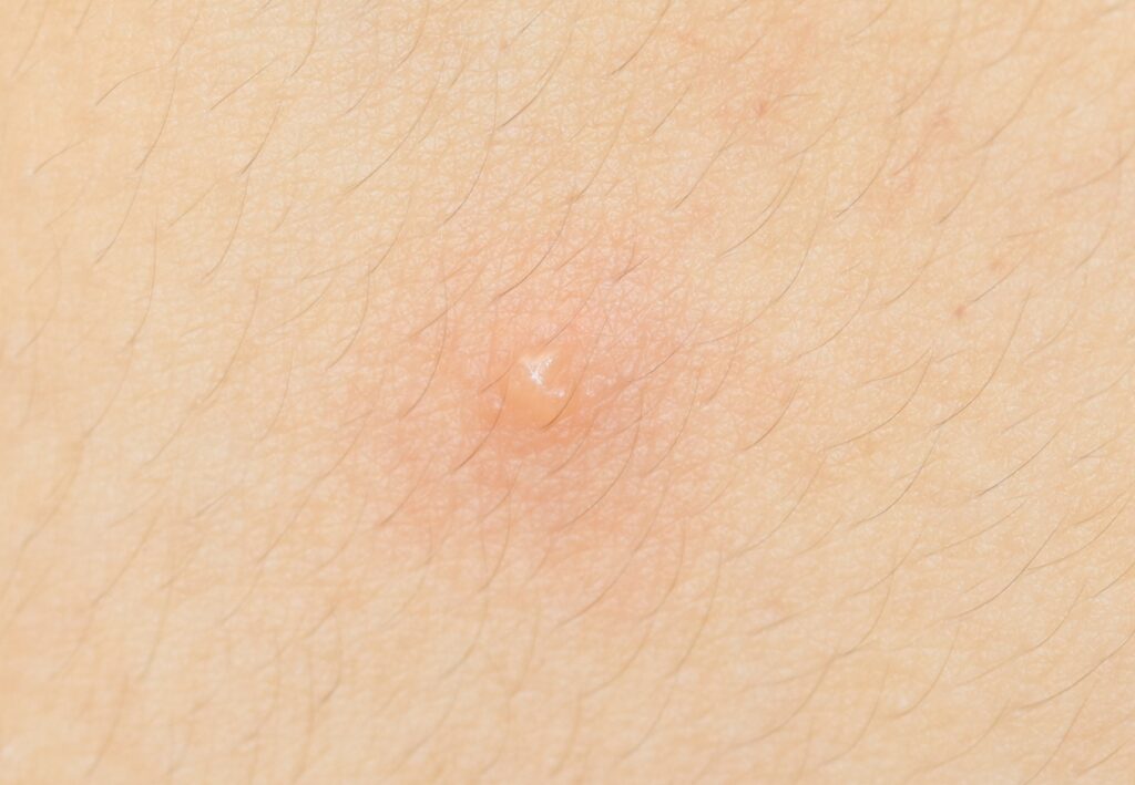 そのポツポツの中に、小さい水疱(水ぶくれ)ができます。
