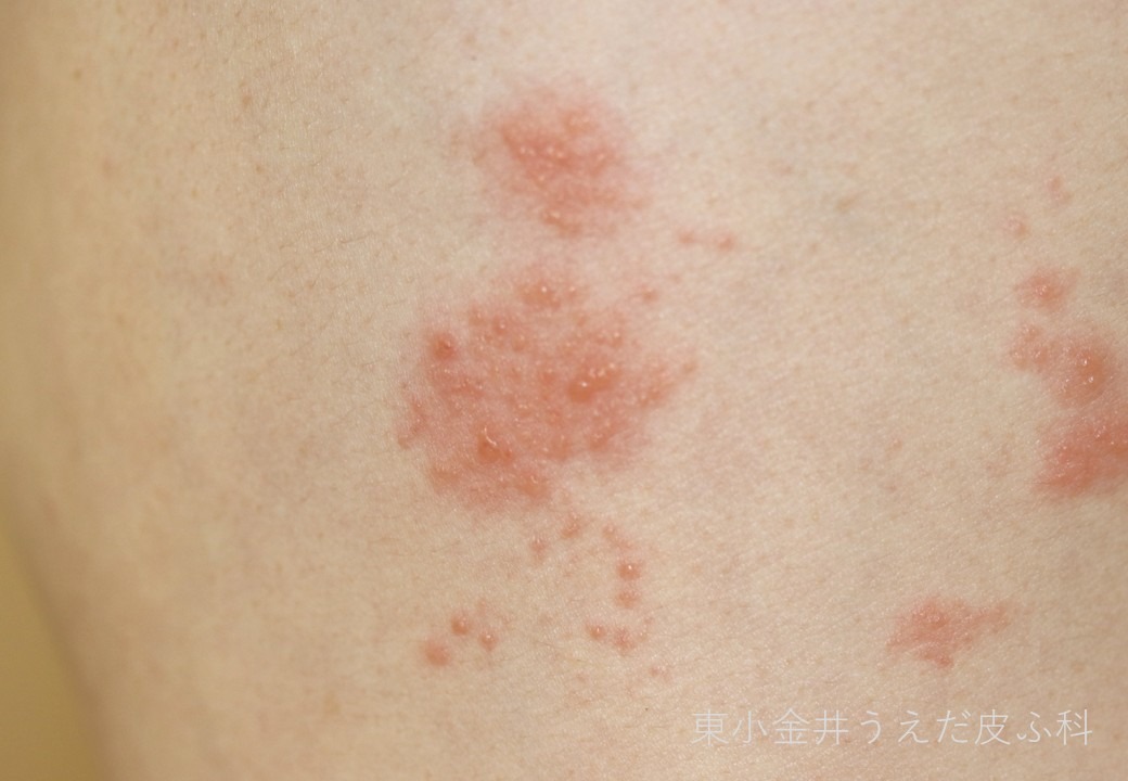 その後、皮膚に赤味がでて徐々に水疱が出てきます。